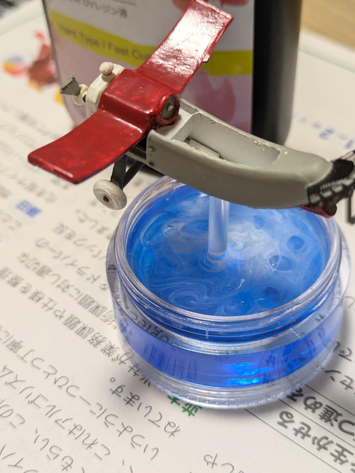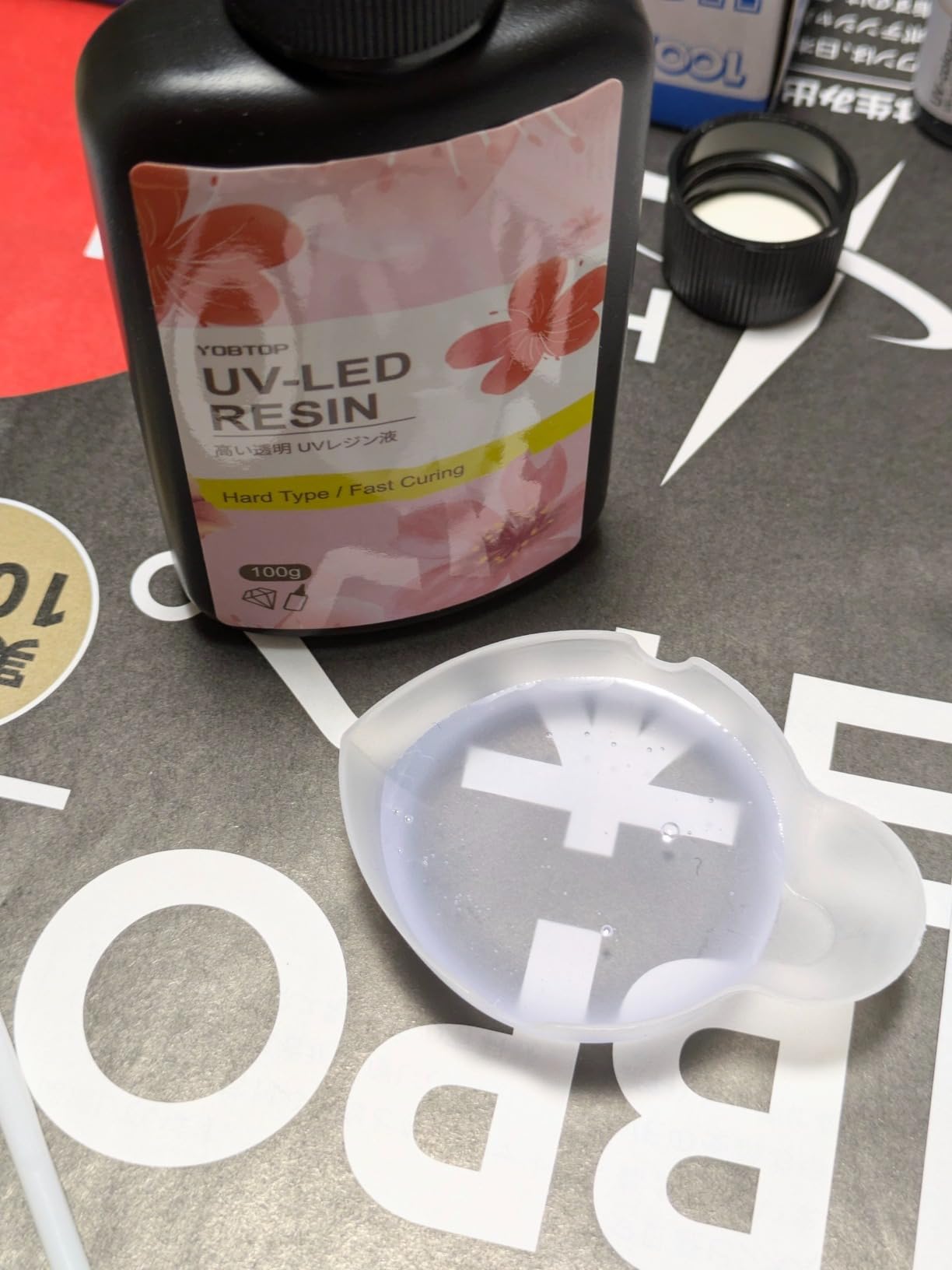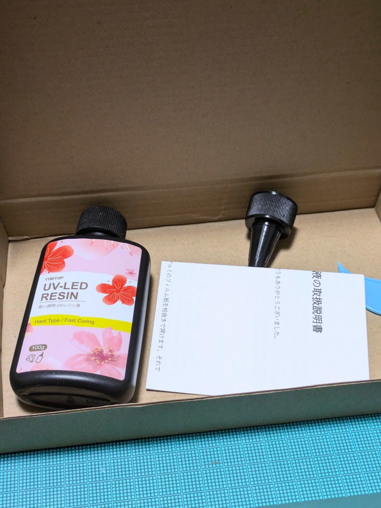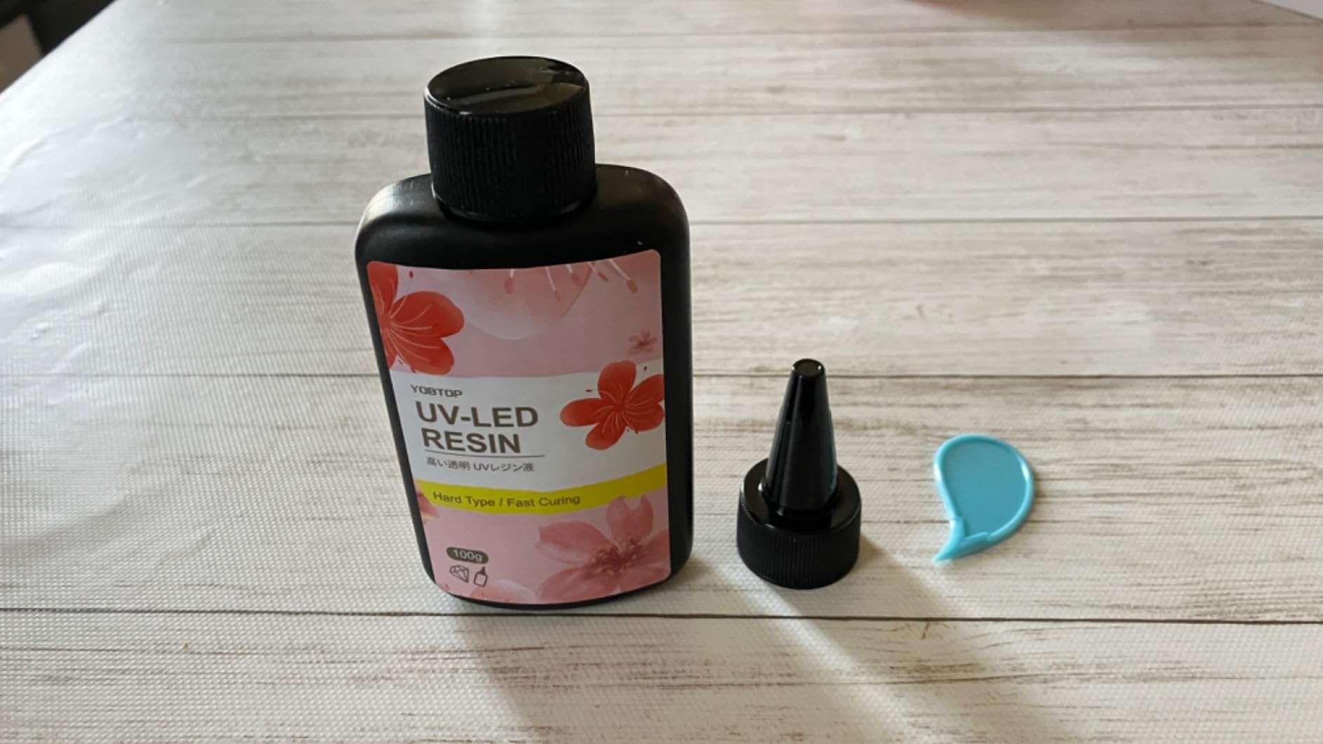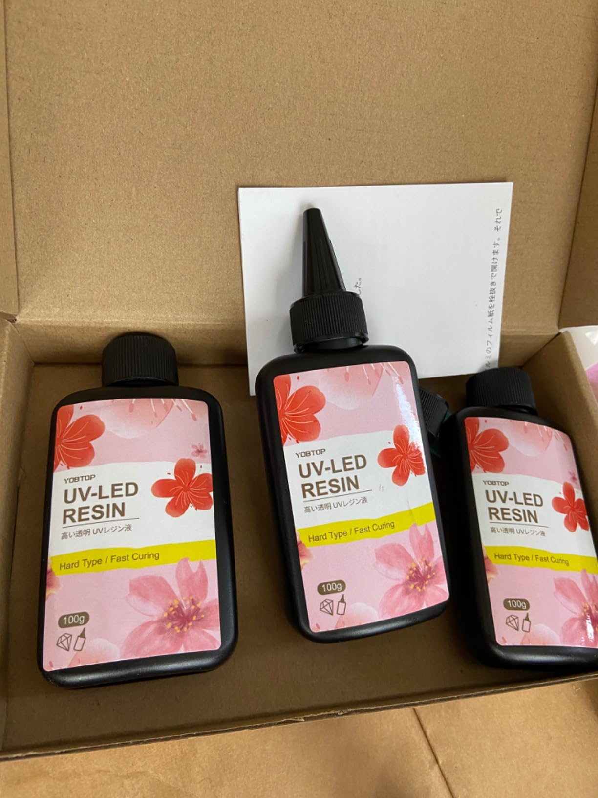 ドロっと感が全然なく、サラッとした感じのレジンです。低粘度を謳っていましたが、その通りだなーと。透明度も良く、色付けもしやすかったです。輸送時の衝撃軽減のためか3本ともミニサイズの段ボールボックスに並んで入っており、好感をもちました。蓋の中もしっかりと密封されており、配送時にレジンが漏れたりすることは考えられないです。リピートしたくなる出来でした。満足!